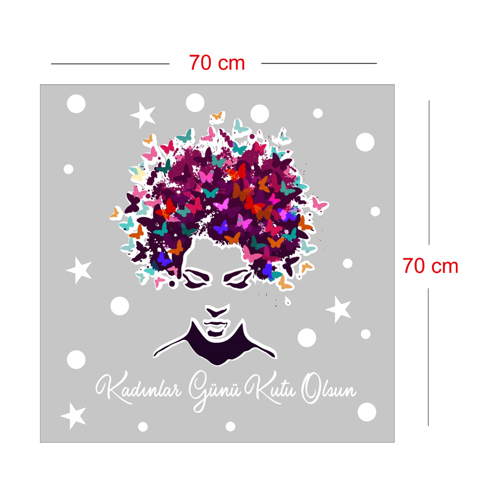 Kelebekler ve 8 Mart Kadınlar Günü Kutlu Olsun İndirim Yazısı Cam Vitrin Stickerı