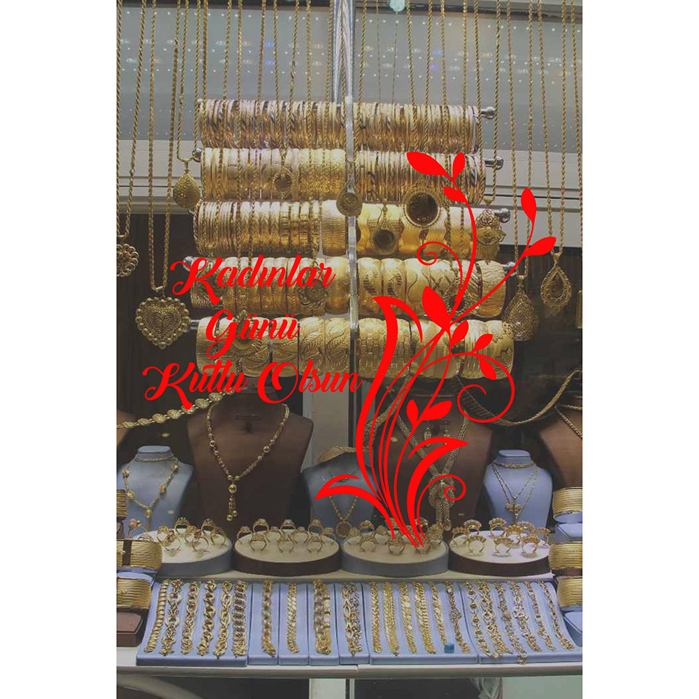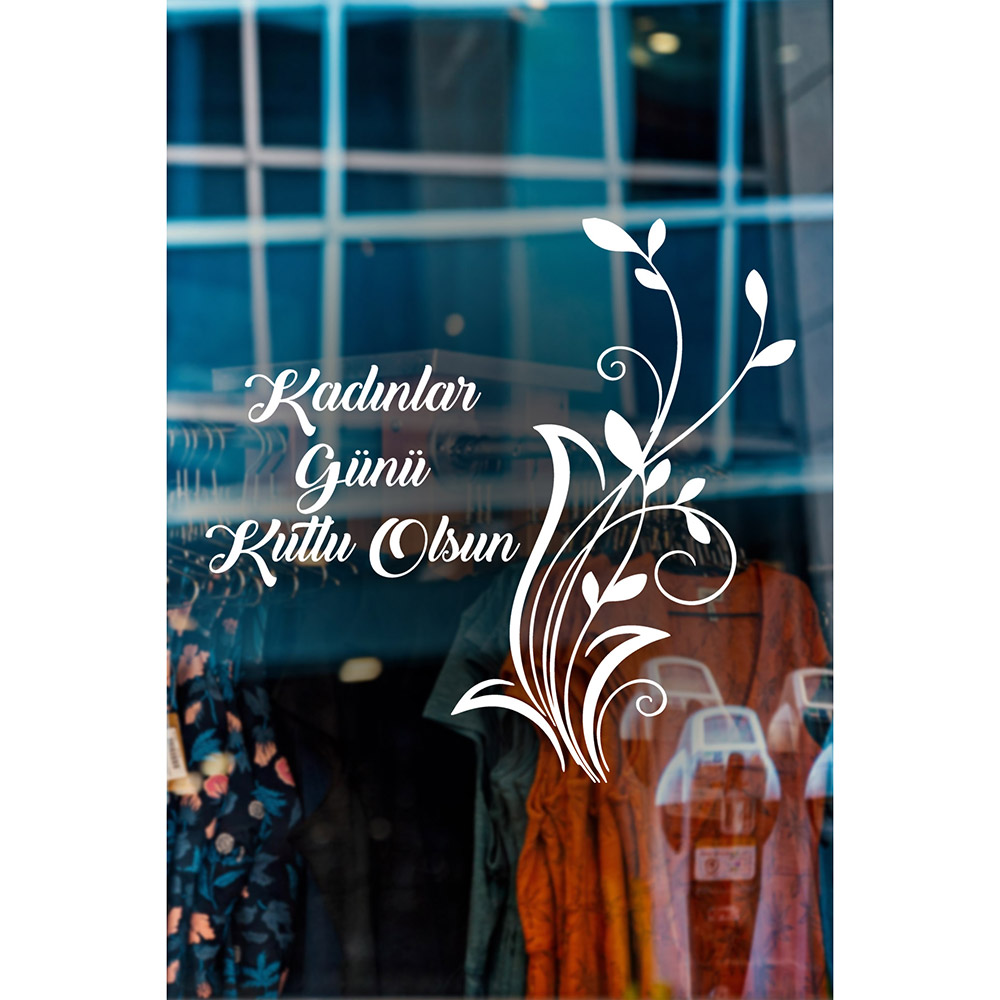 Zarif Çiçek ve 8 Mart Kadınlar Günü Kutlu Olsun Yazısı Cam Vitrin Stickerı 60cm