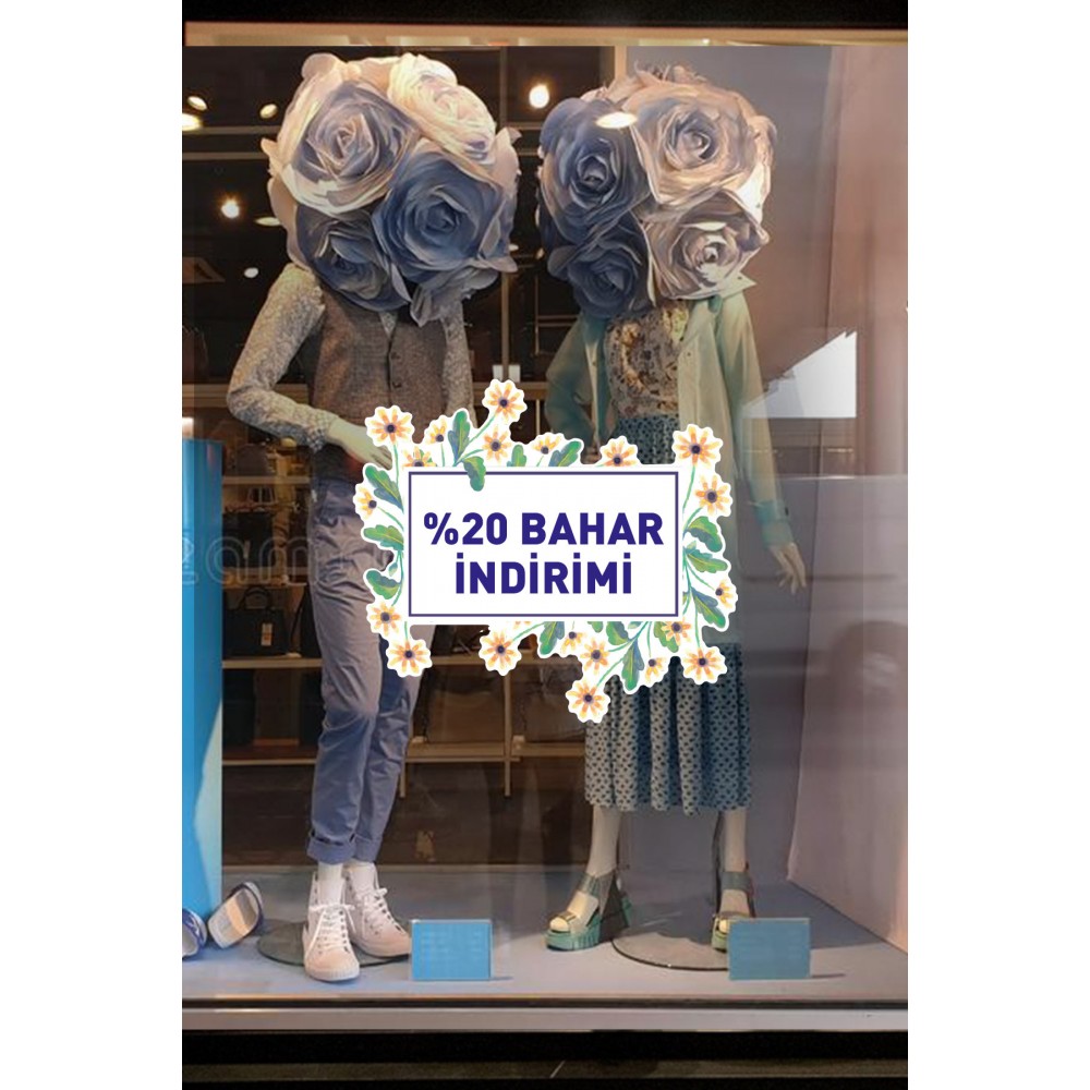 Ahenkli Çiçekler Vitrin Tacı Tasarımı Mağaza Vitrin Cam Stickerı
