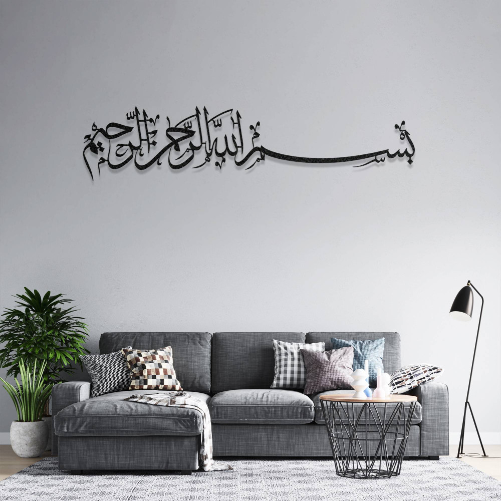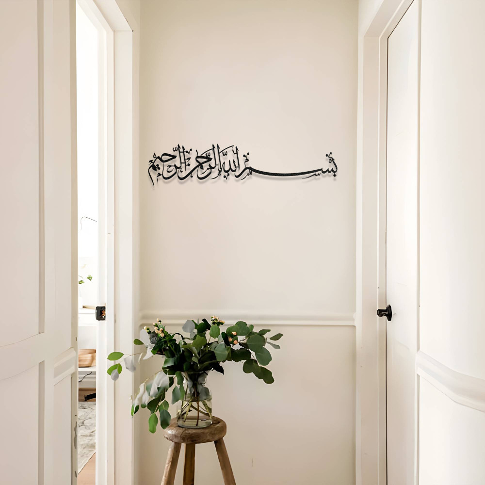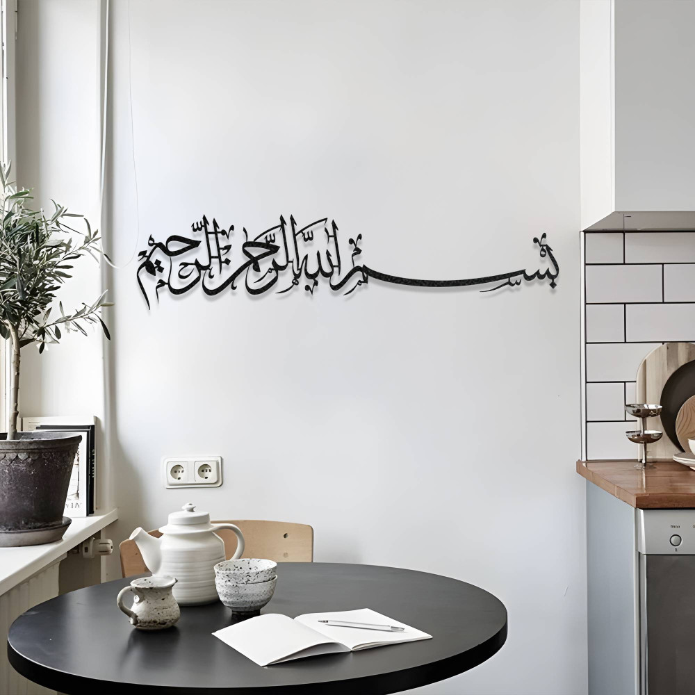 Geleneksel İslami hat sanatından ilham alınarak hazırlanan bu tasarım, modern metal işçiliği ile üretilmiştir. Salon, oturma odası, antre, çalışma alanı veya ibadet alanlarında kullanılabilecek bu dekoratif tablo, mekâna huzurlu ve anlamlı bir atmosfer kazandırır.
