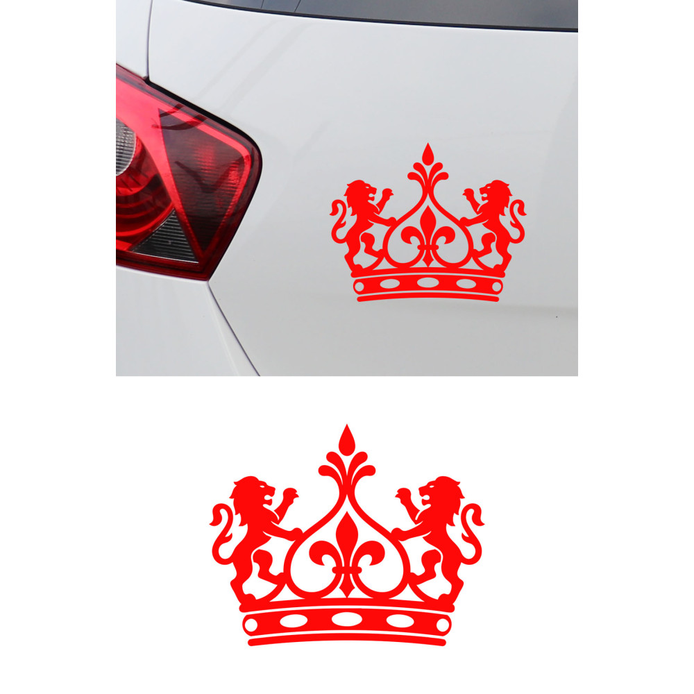 Aslan Figürlü Taç Sticker - Aslan Detaylı Taç Oto Sticker - Lüks Oto Aksesuar 15x12cm
