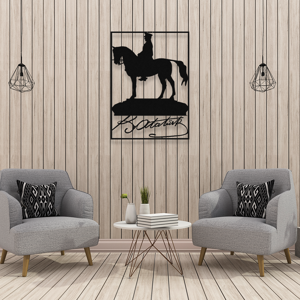 At Üstünde Mustafa Kemal Atatürk Ve K.Atatürk İmzası Metal Dekoratif İç Mekan İçin Metal Tablo 50x36 Cm