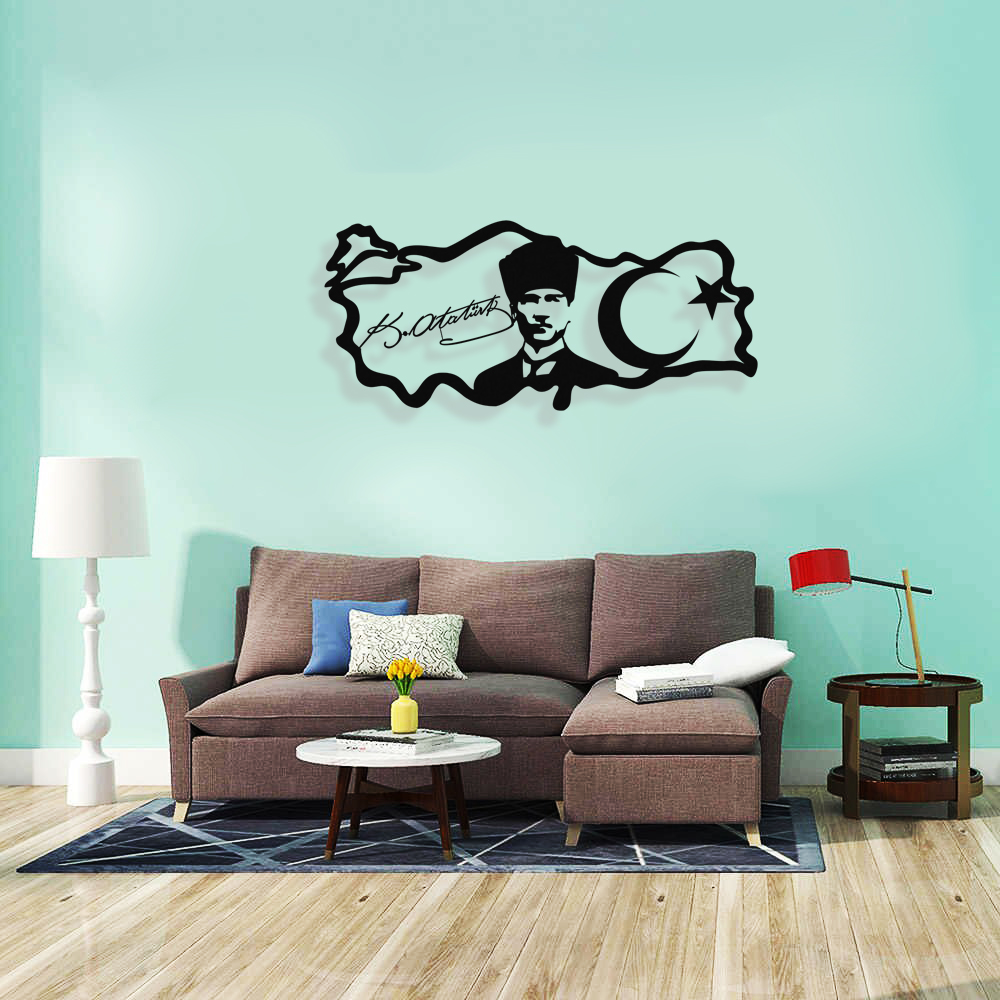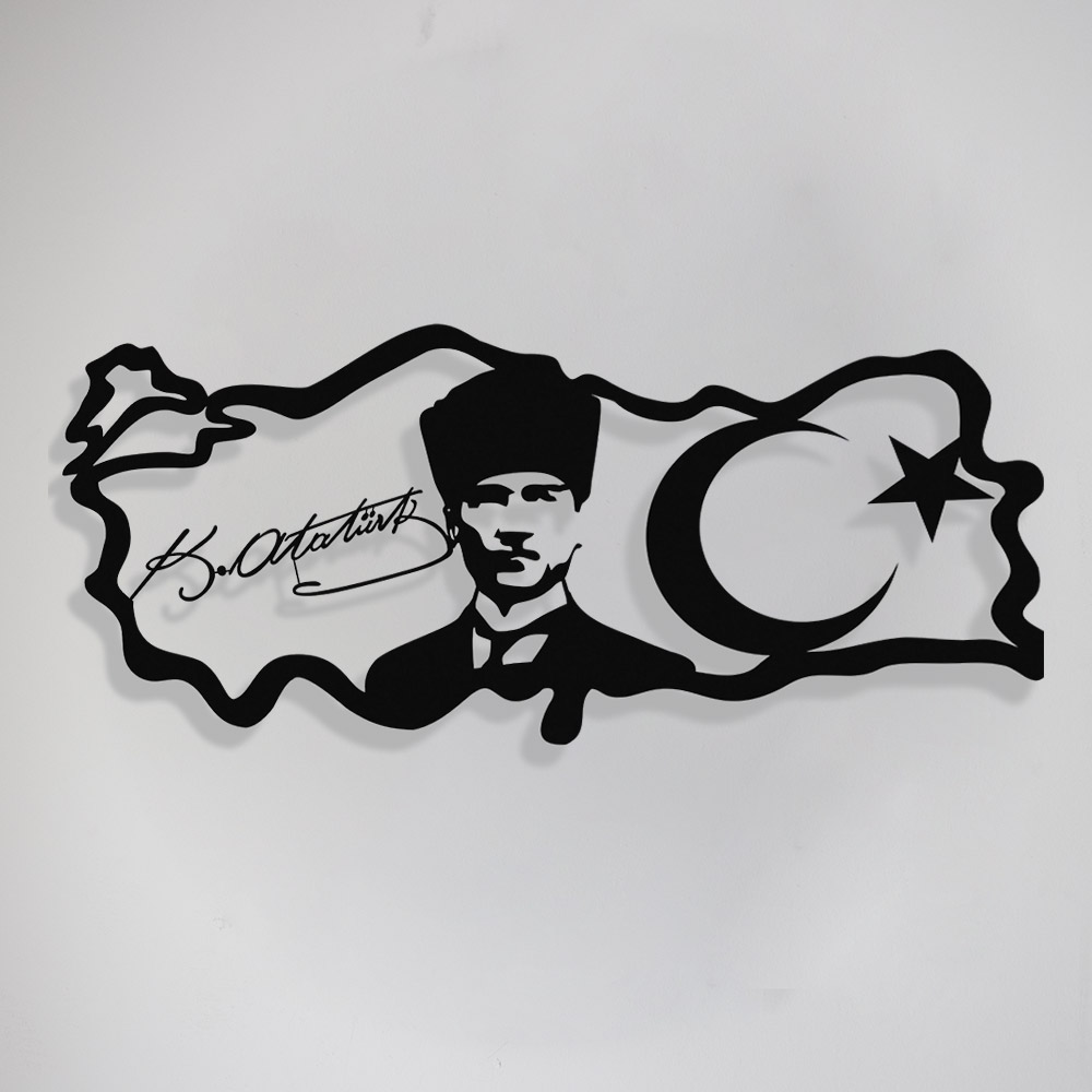 Atatürk İmzası ve Portresi Duvar Oda Ev Aksesuarı Metal Tablo