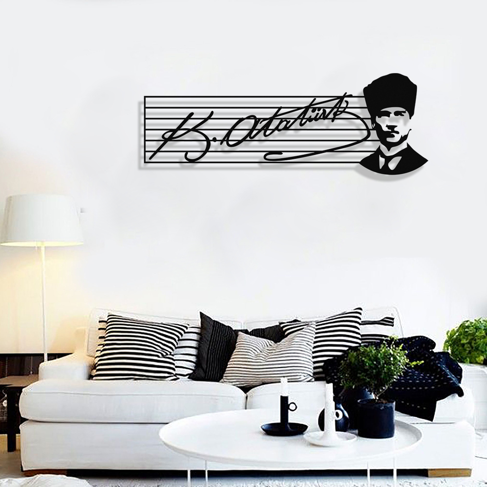 Atatürk İmzası ve Portresi Duvar Oda Ev Aksesuarı Metal Tablo
