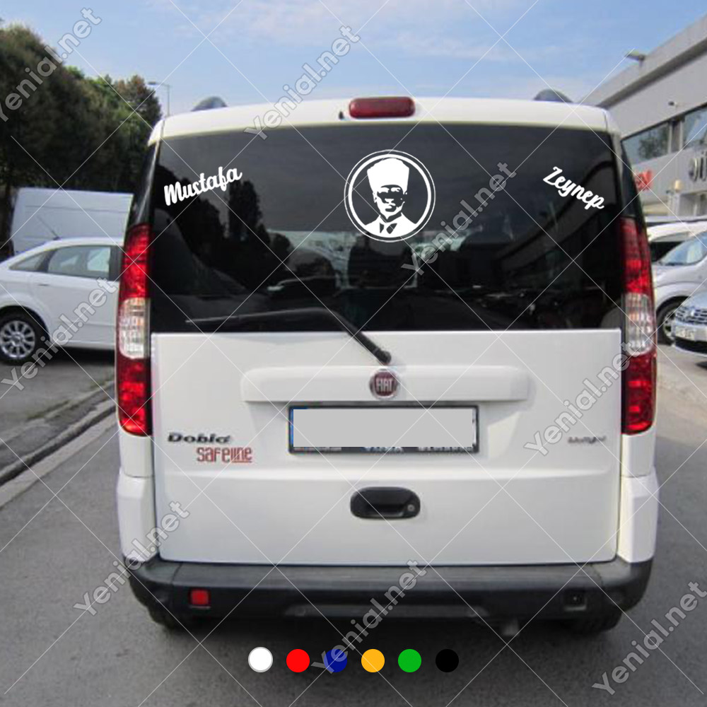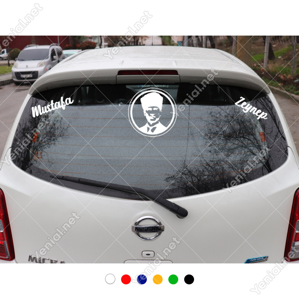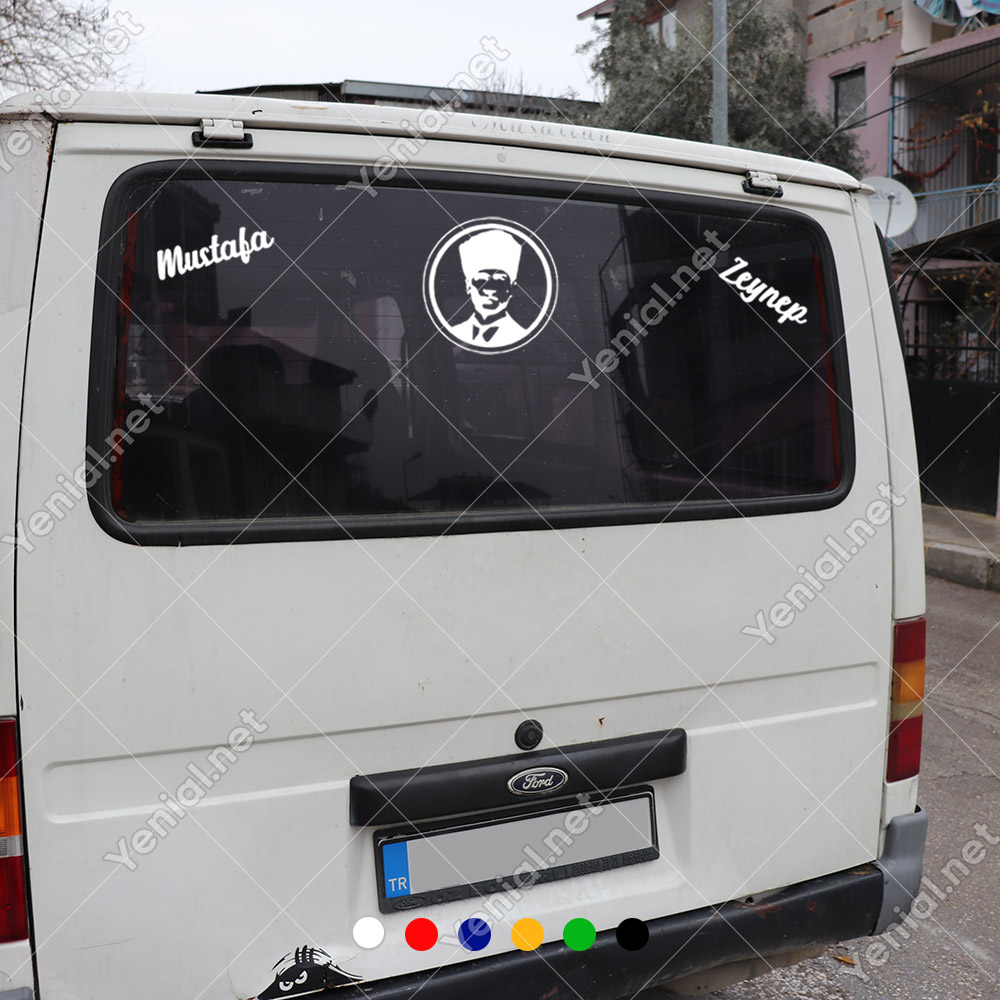 Atatürk Potresi ve Kişiye Özel 2 Adet Yazı Araç Stickerları