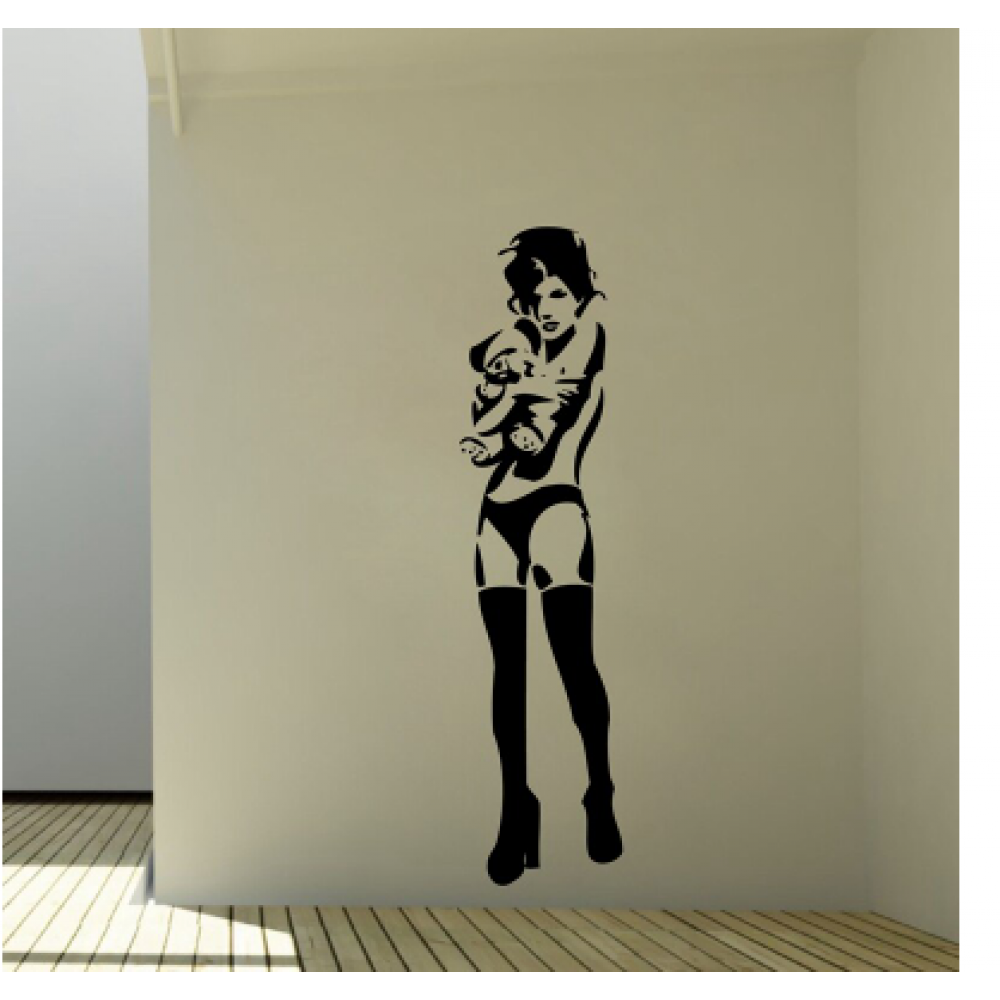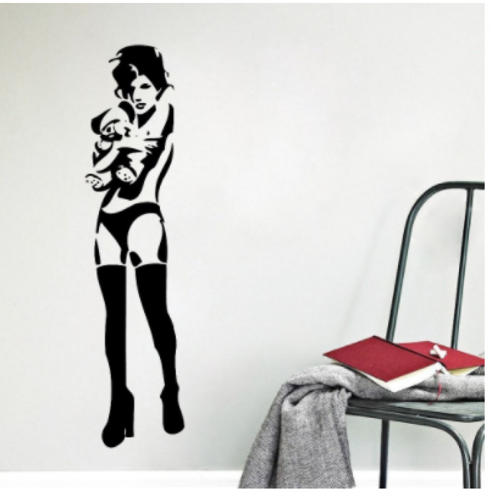 Banksy Seksi Kadın Duvar Yazısı Cam Vitrin Sticker Yapıştırma