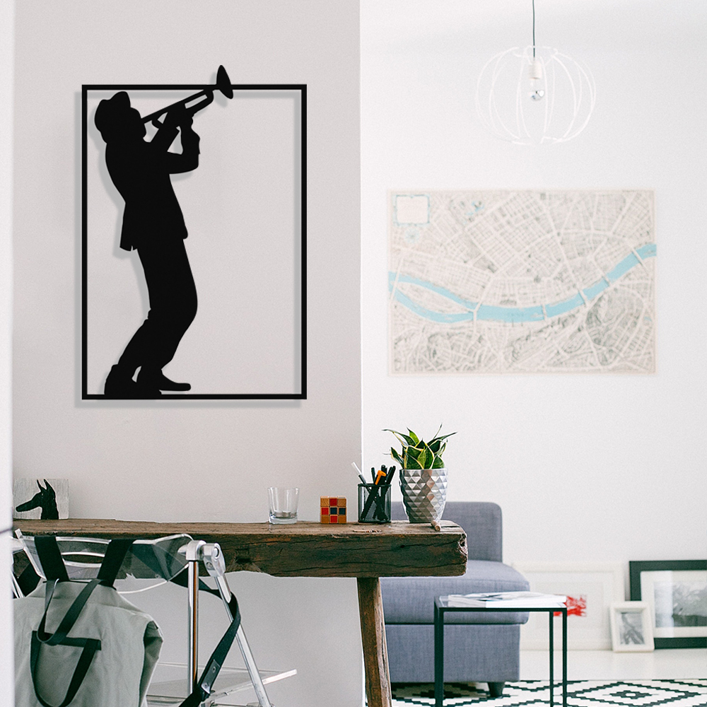 Çerçeve İçinde Saksafon Çalan Şapkalı Adam Tasarım Metal Tablosu 70x46cm