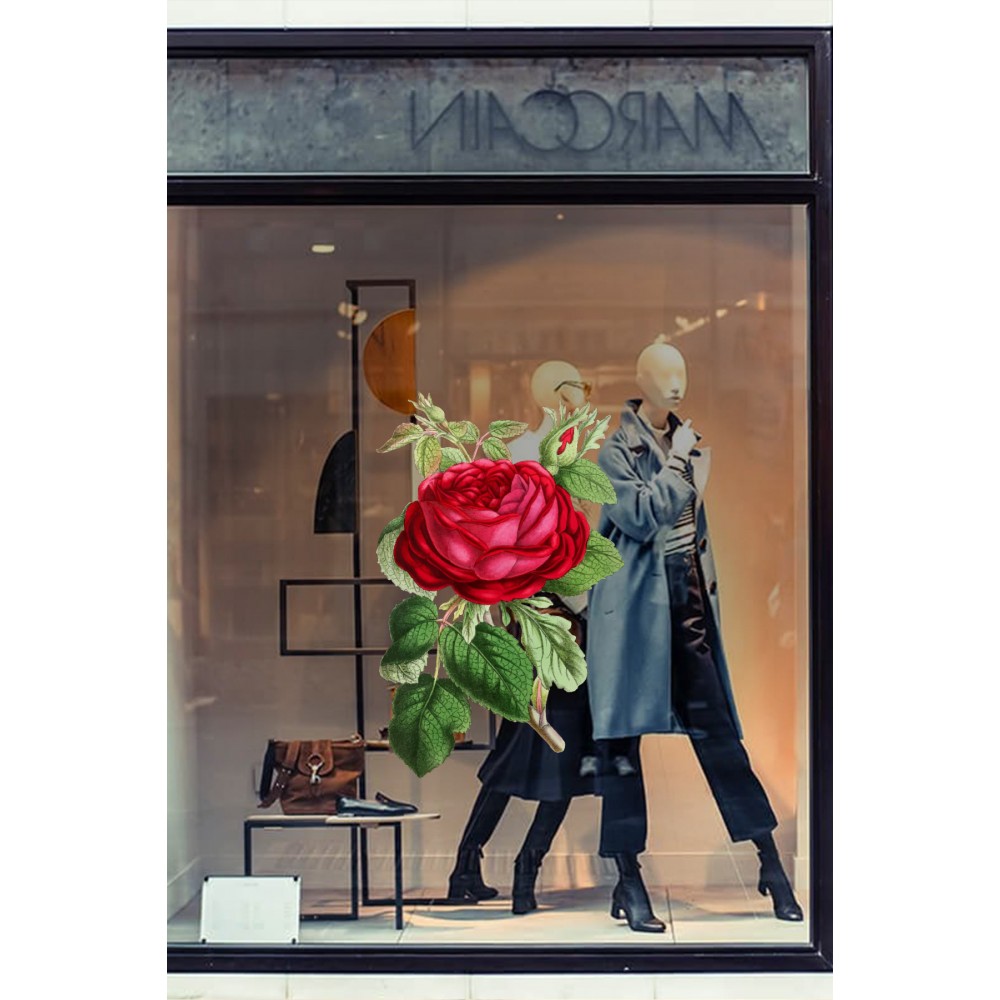 Çiçek ve Uçuşan Kelebelekler Vitrin Tacı Mağaza Vitrin Cam Stickerı
