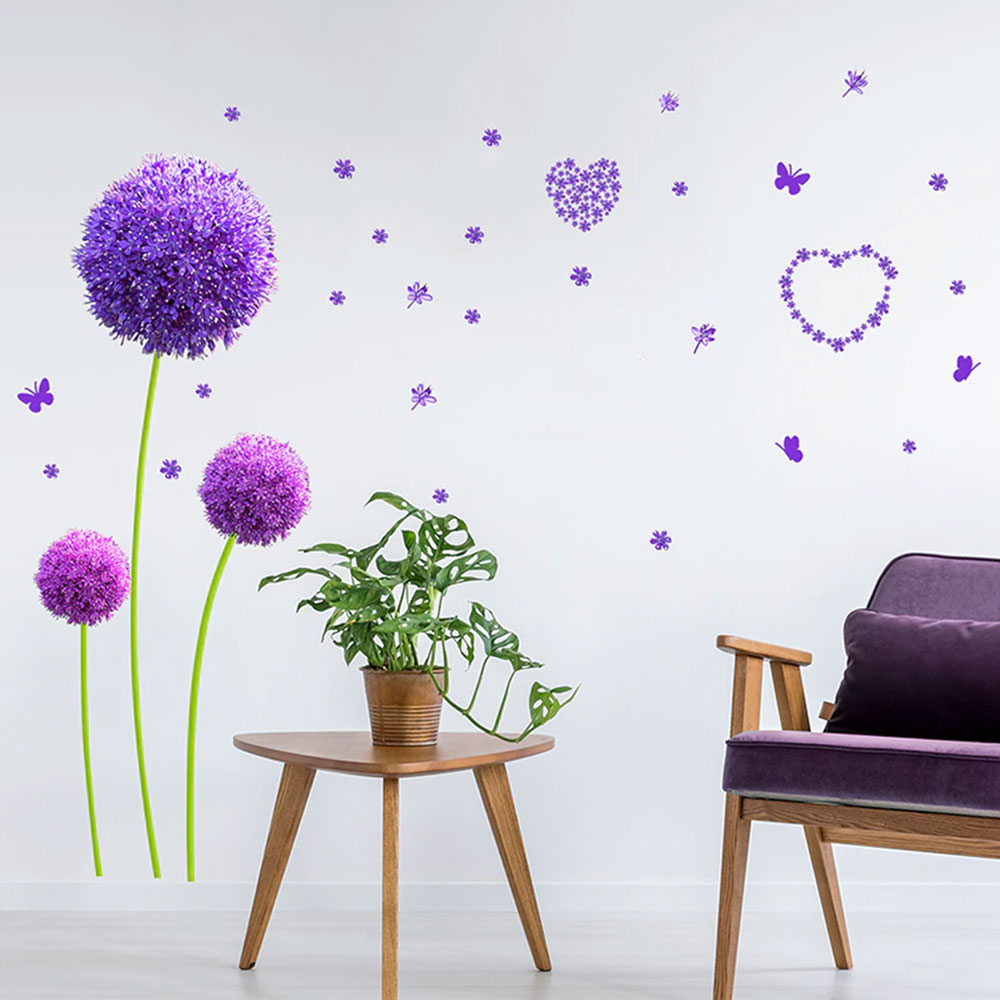 Çiçekçilere Özel Mor Karahindiba Çiçek Dekorasyon Cam Vitrin Sticker Yapıştırma