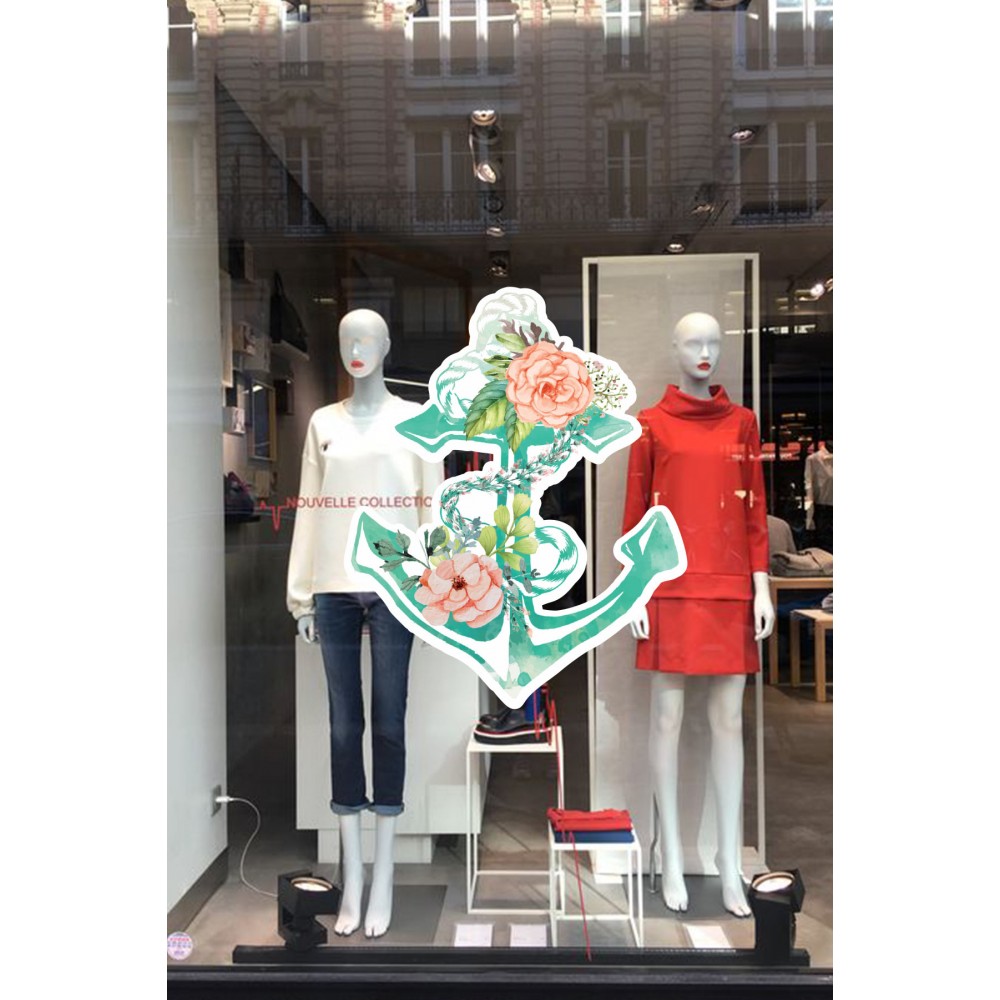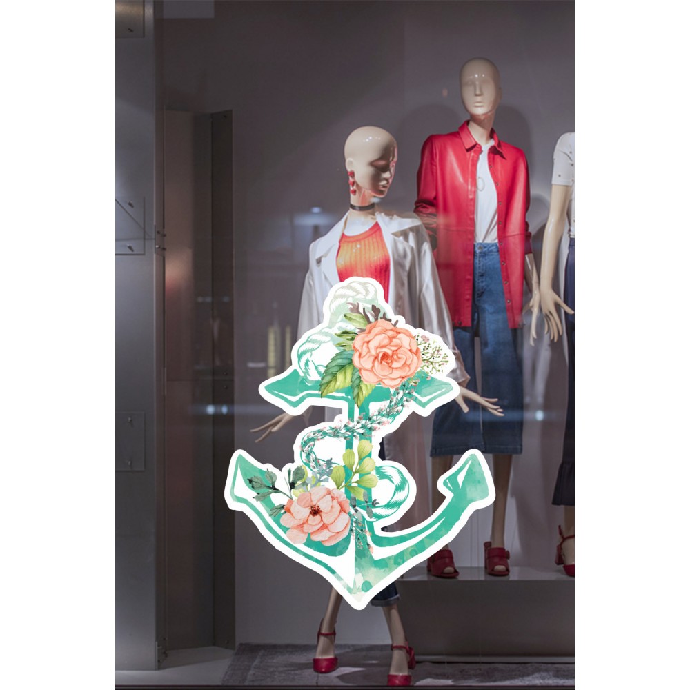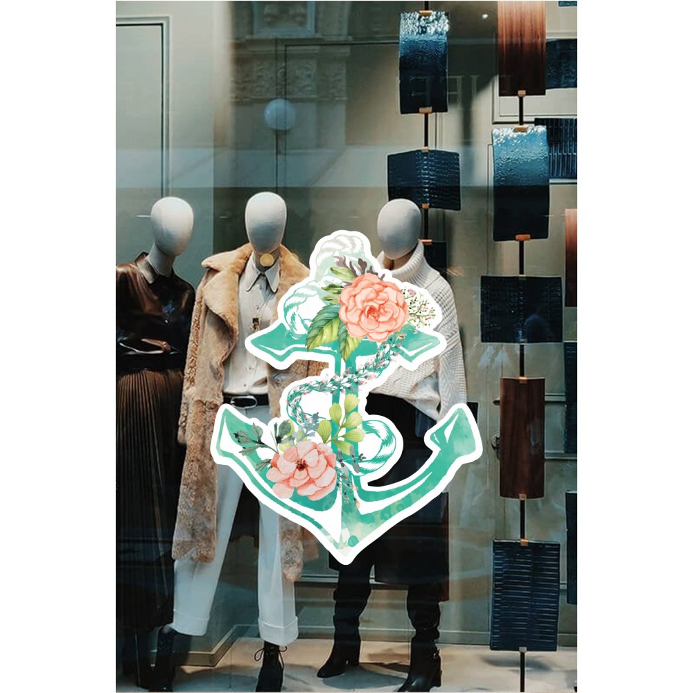 Deniz Çapası ve Güller Vitrin Süsü Mağaza Vitrin Tasarımı Cam Stickerı