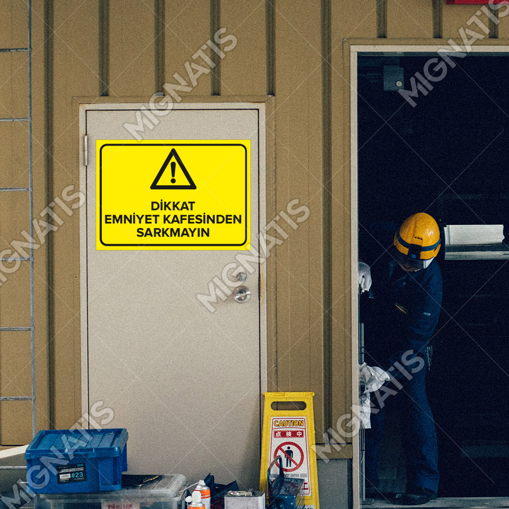 Dikkat Emniyet Kafesinden Sarkmayın Levhası