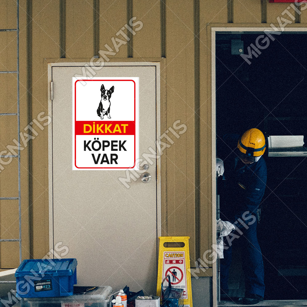 Dikkat Köpek Var Levhası Oturan Boston Terrier