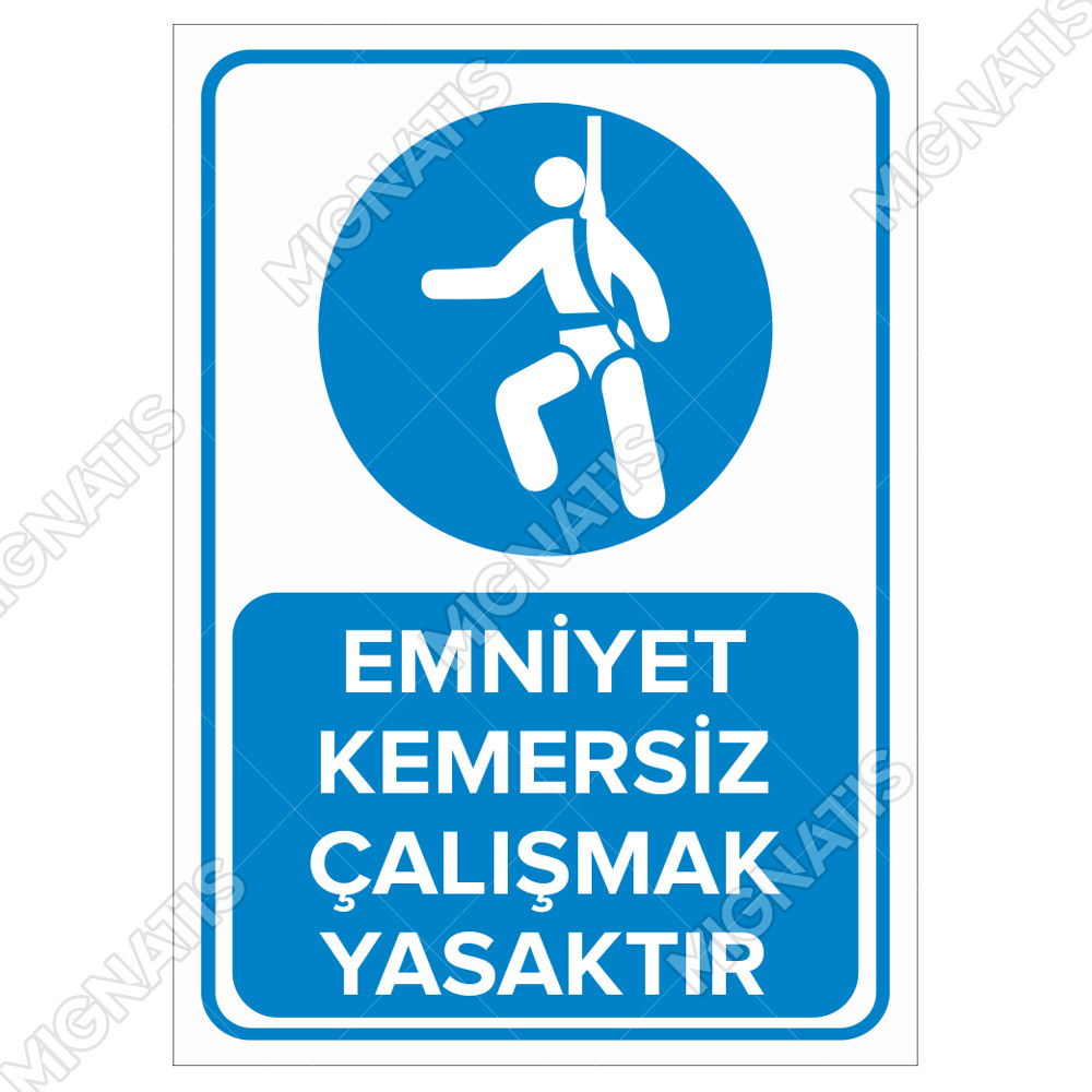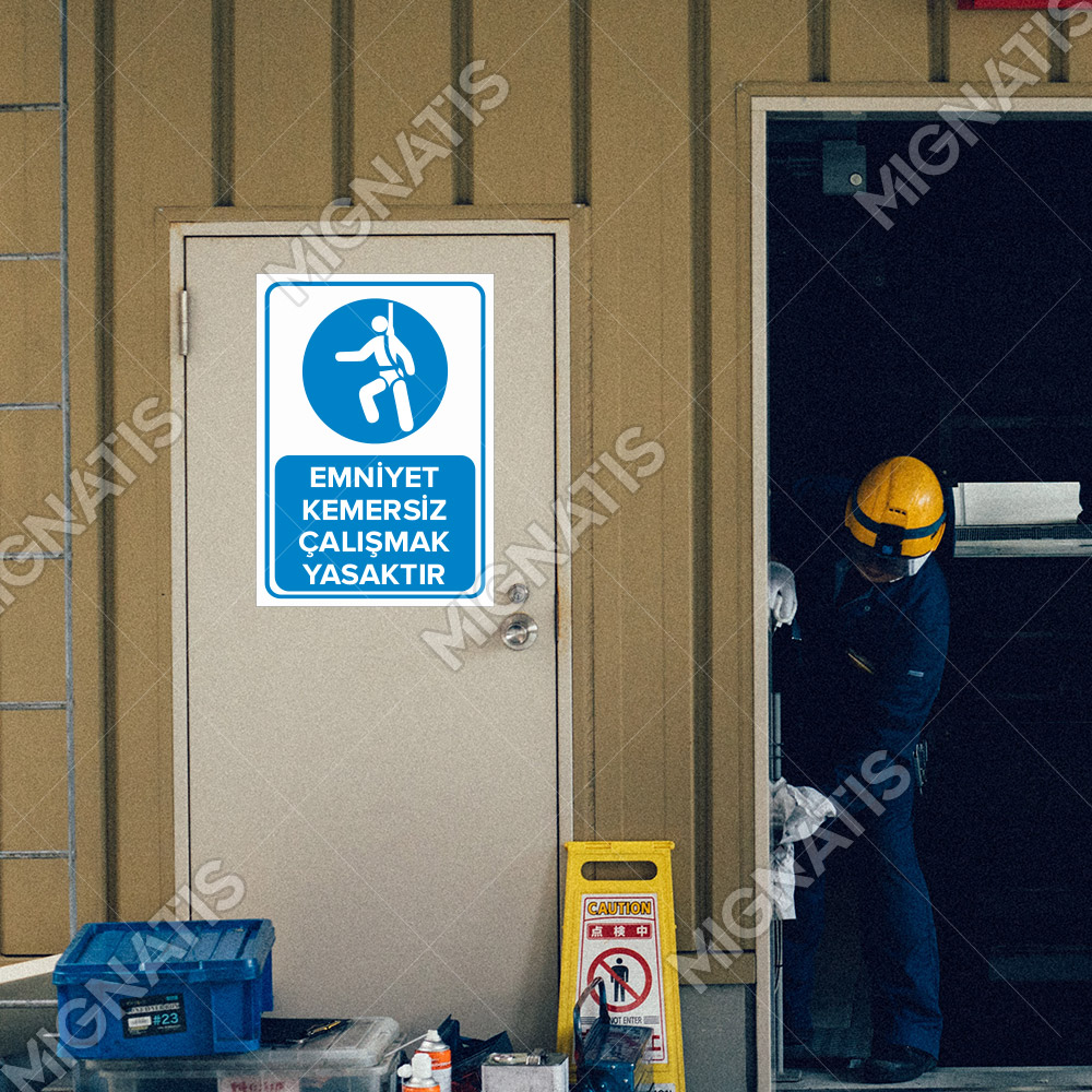 Emniyet Kemersiz Çalışmak Yasaktır Levhası