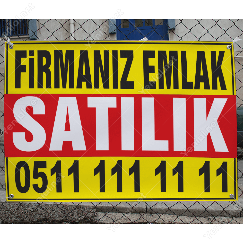 Firmanız Emlaktan Satılık Branda Afişi (Sarı Mavi Renk)