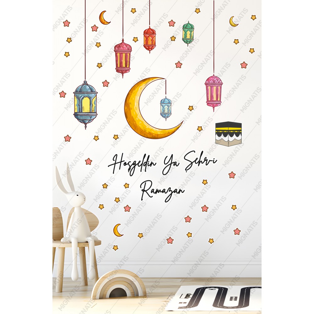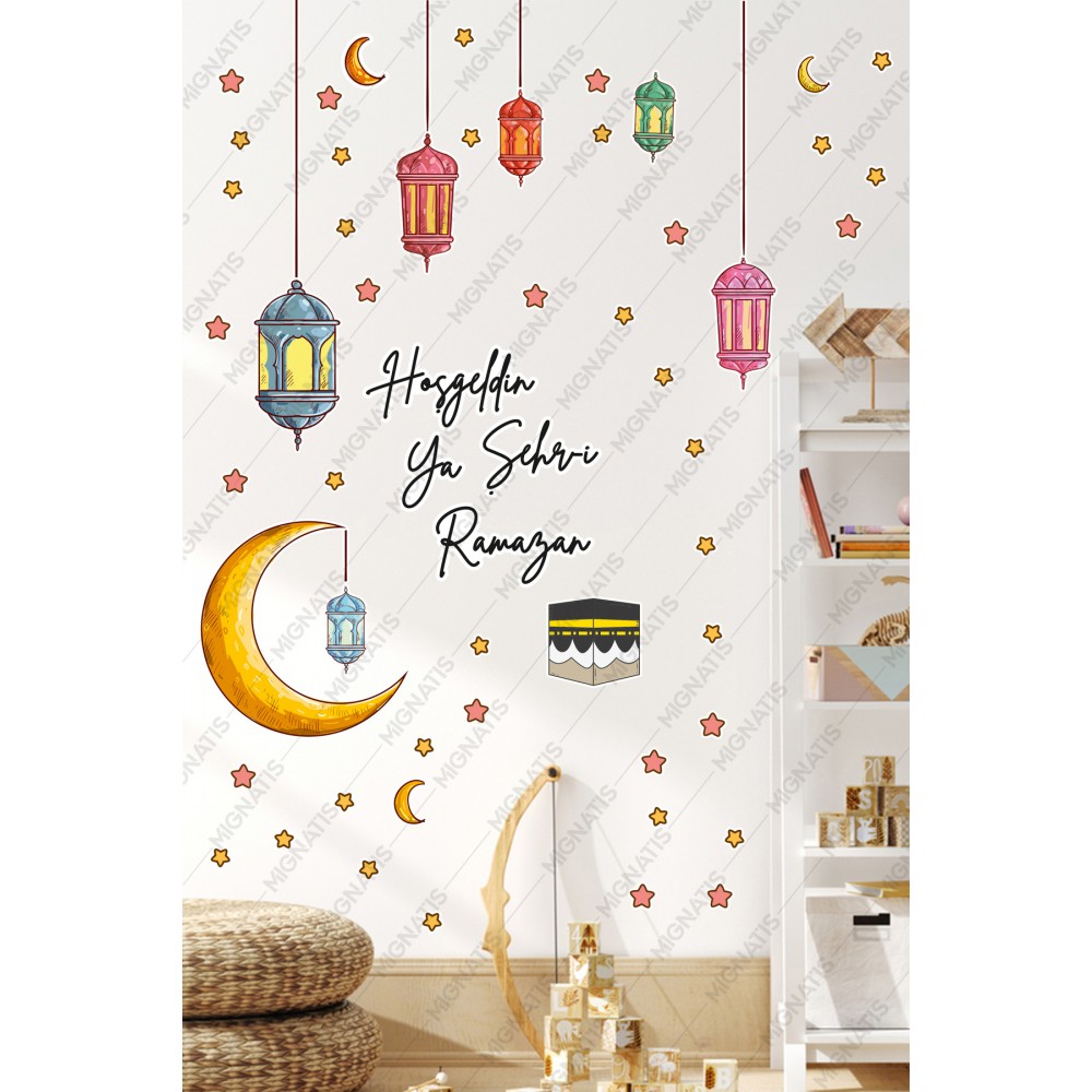 Hoşgeldin Ramazan Sticker Seti - Ramazan Ayı Temalı Cam Duvar Süsleri Çocuk Odası, Bebek Odası Duvar