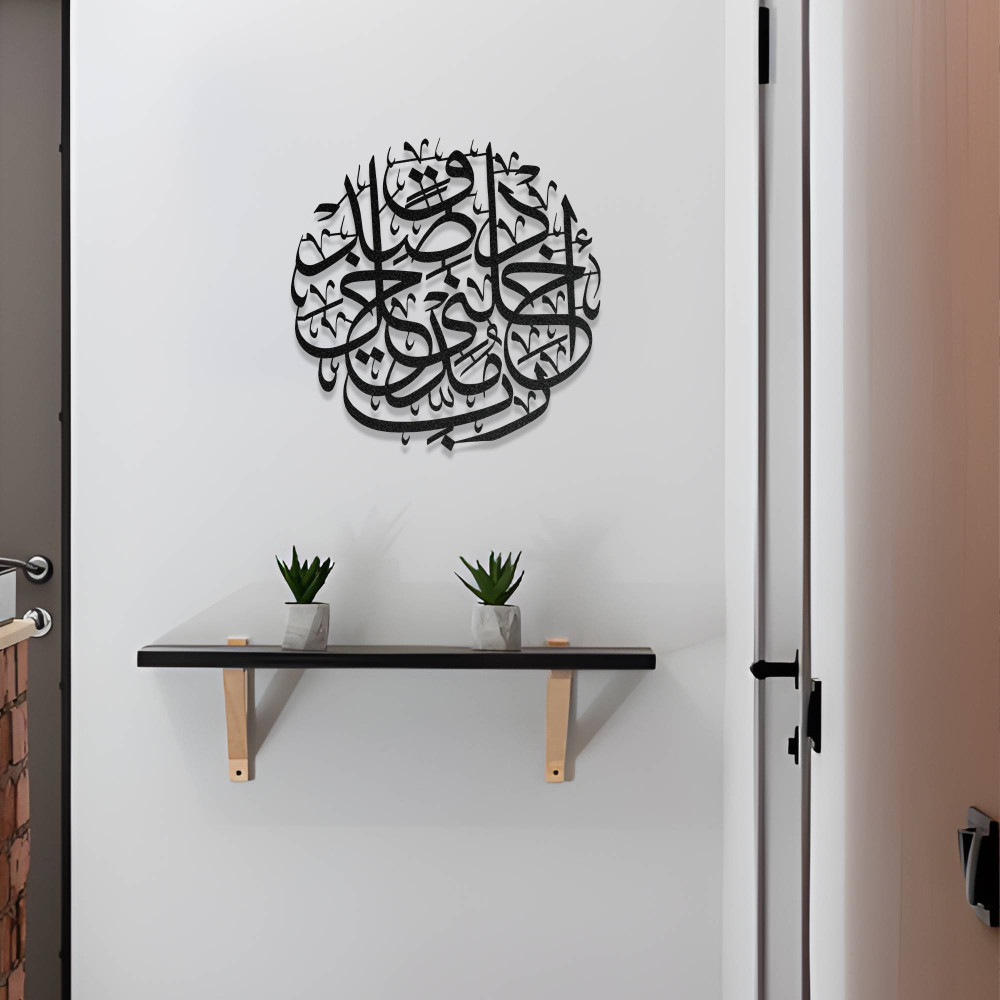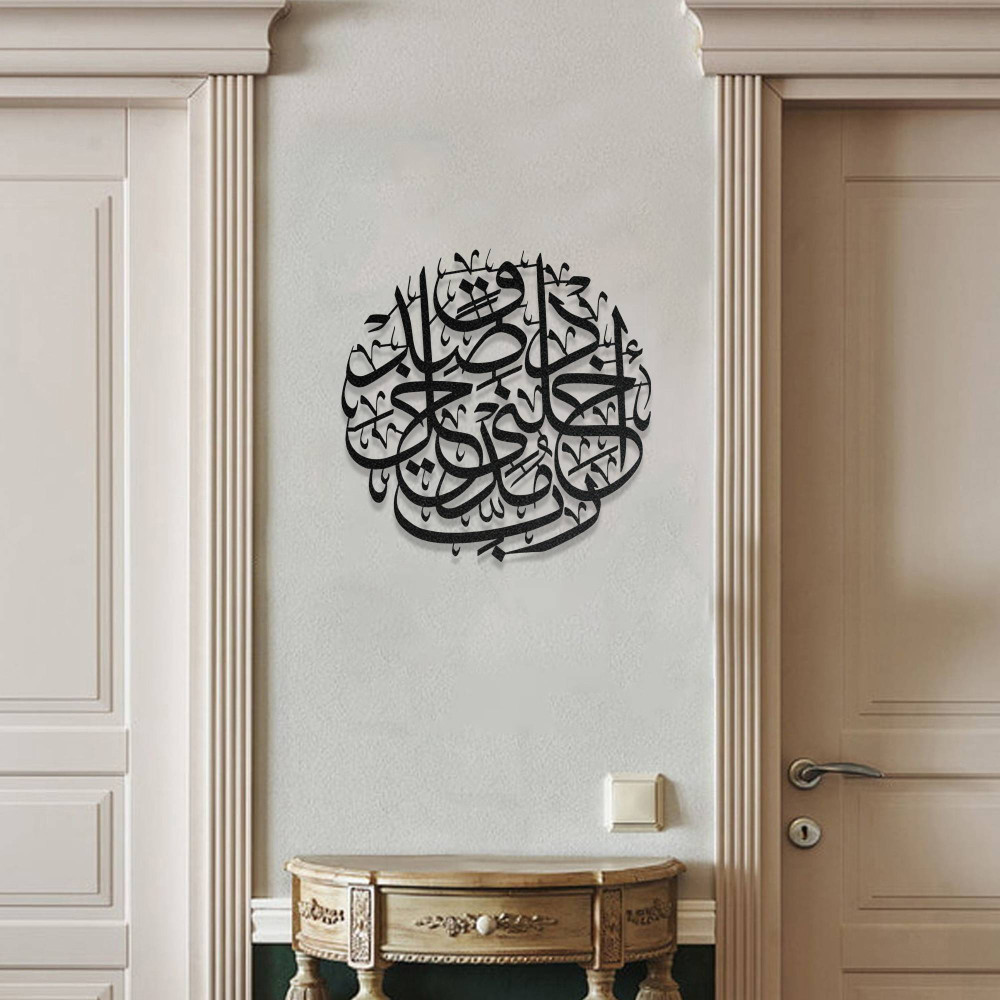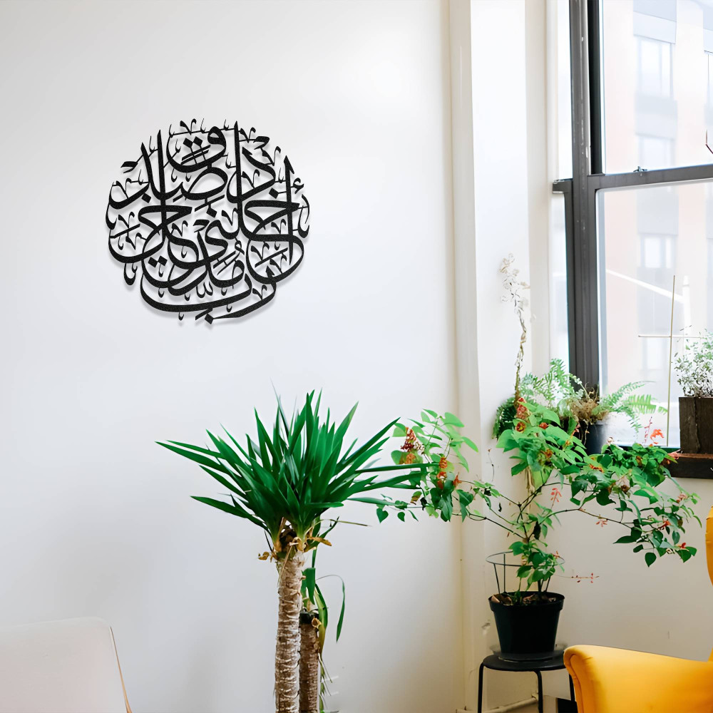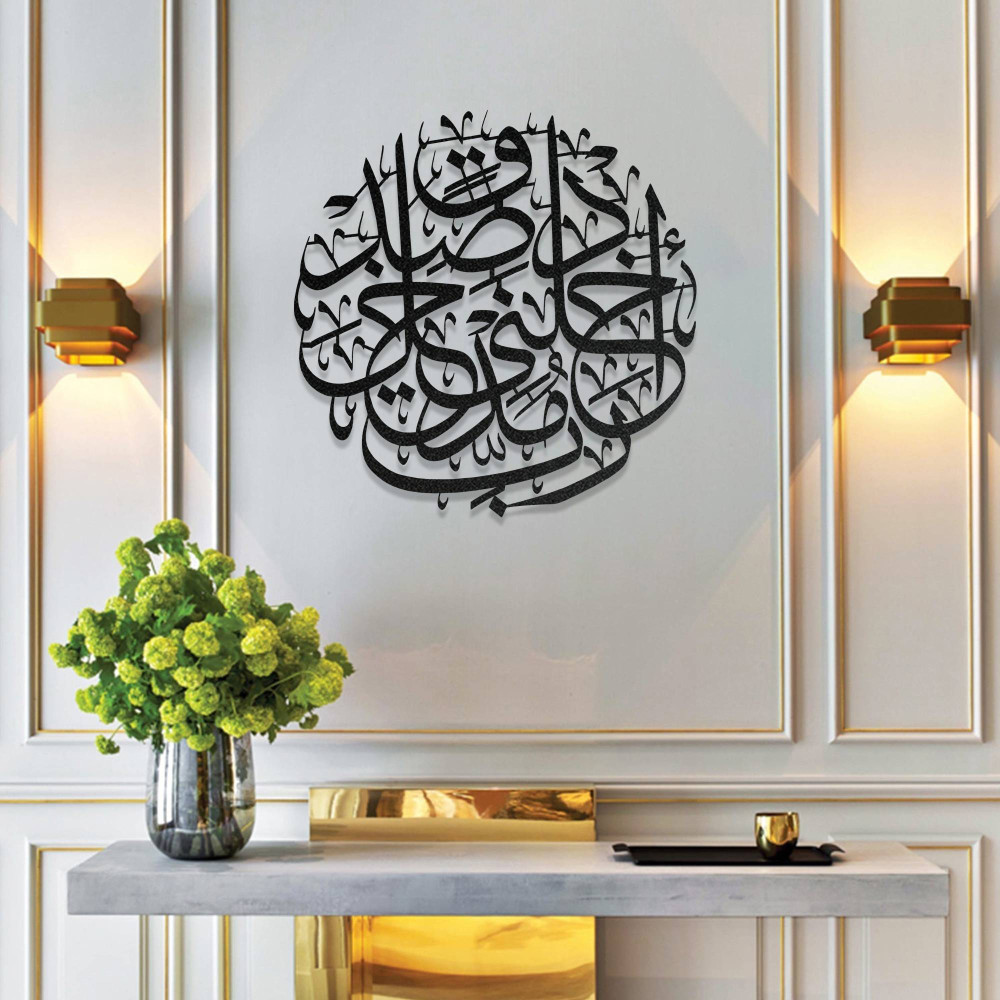 Detaylı hat motifleri ve dengeli tasarımı sayesinde duvarlarda sanatsal ve anlamlı bir görünüm oluşturur. Salon, oturma odası, antre veya ibadet alanlarında kullanılabilecek bu dekoratif tablo, mekâna huzurlu ve manevi bir atmosfer kazandırır.