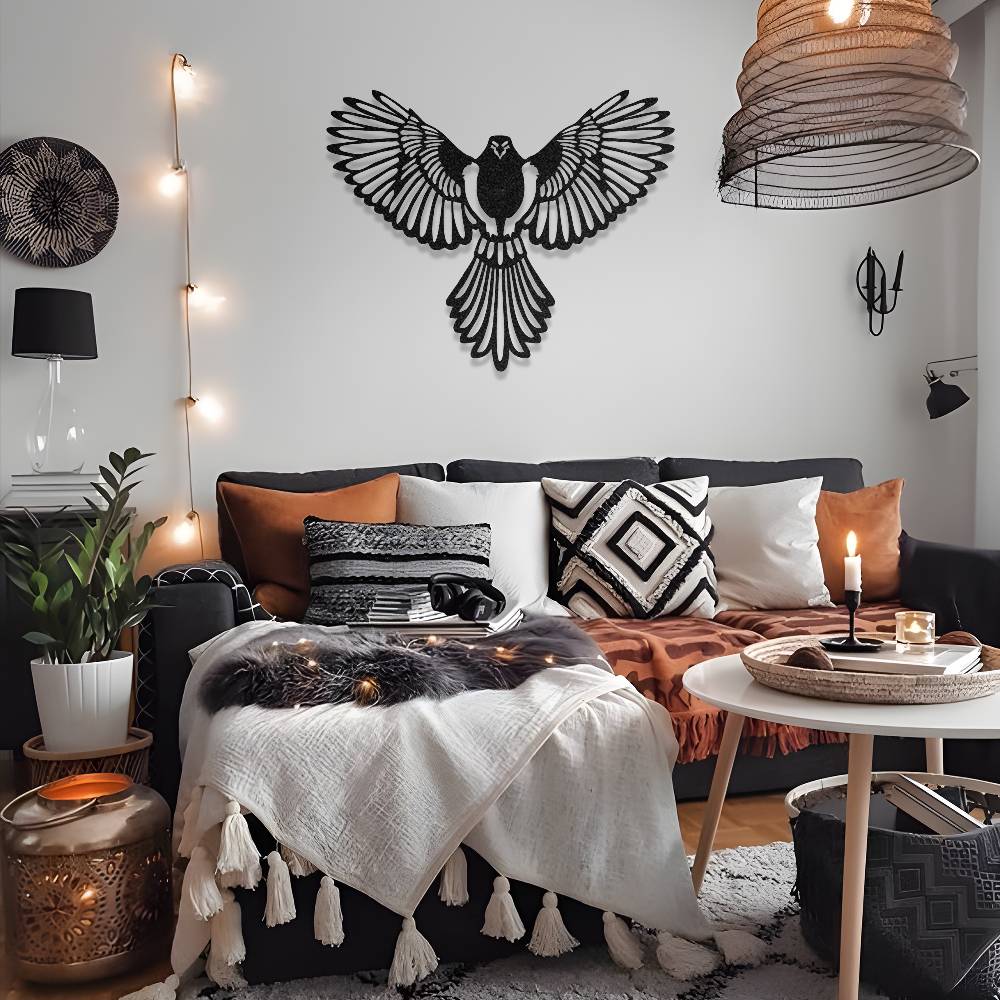 Kanatlarını açmış kuş figürüyle tasarlanan bu metal duvar dekoru, özgürlük ve doğanın zarafetini yaşam alanlarınıza taşır. Detaylı kanat çizimleri sayesinde modern ve estetik bir görünüm sunar. Salon, yatak odası veya çalışma alanlarında dikkat çekici bir dekoratif parça olarak kullanılabilir. Dayanıklı metal yapısı sayesinde uzun ömürlü kullanım sağlar.