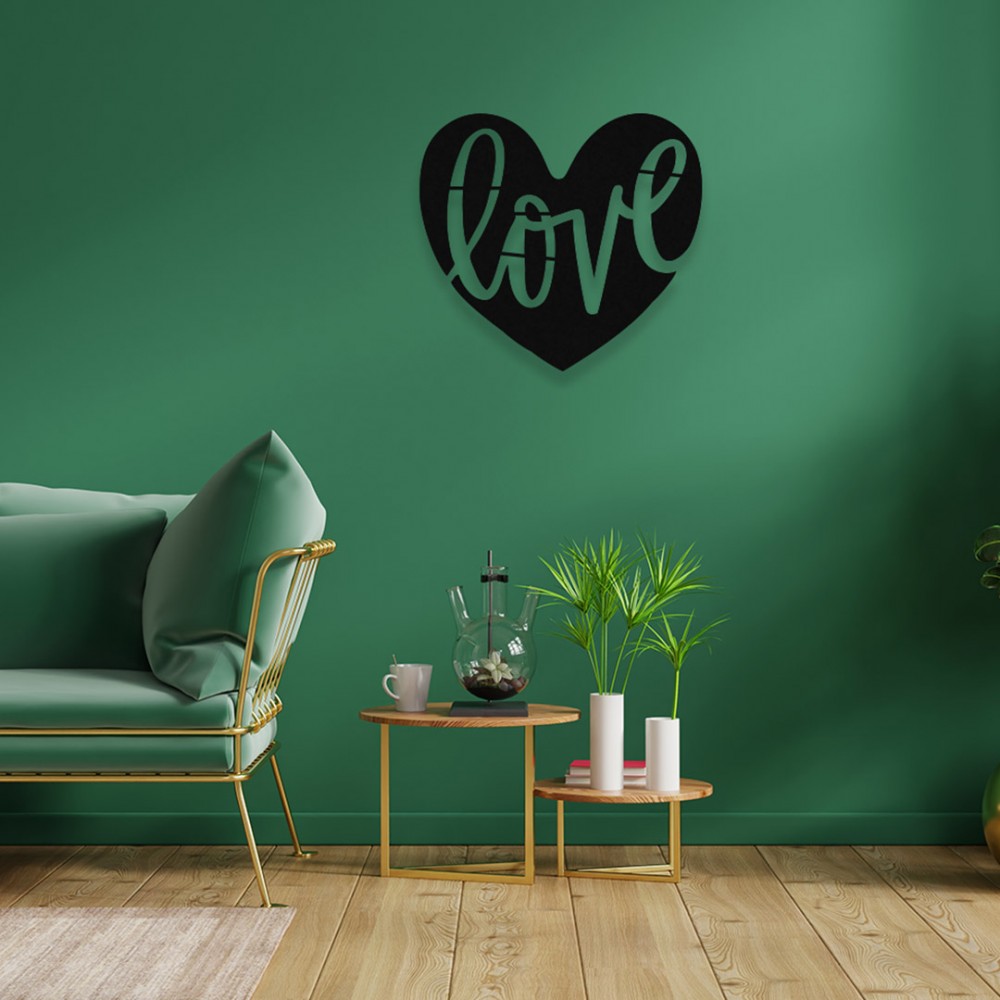 Love Yazılı Kalp Duvar Oda Ev Aksesuarı Metal Tablo 50x50 cm