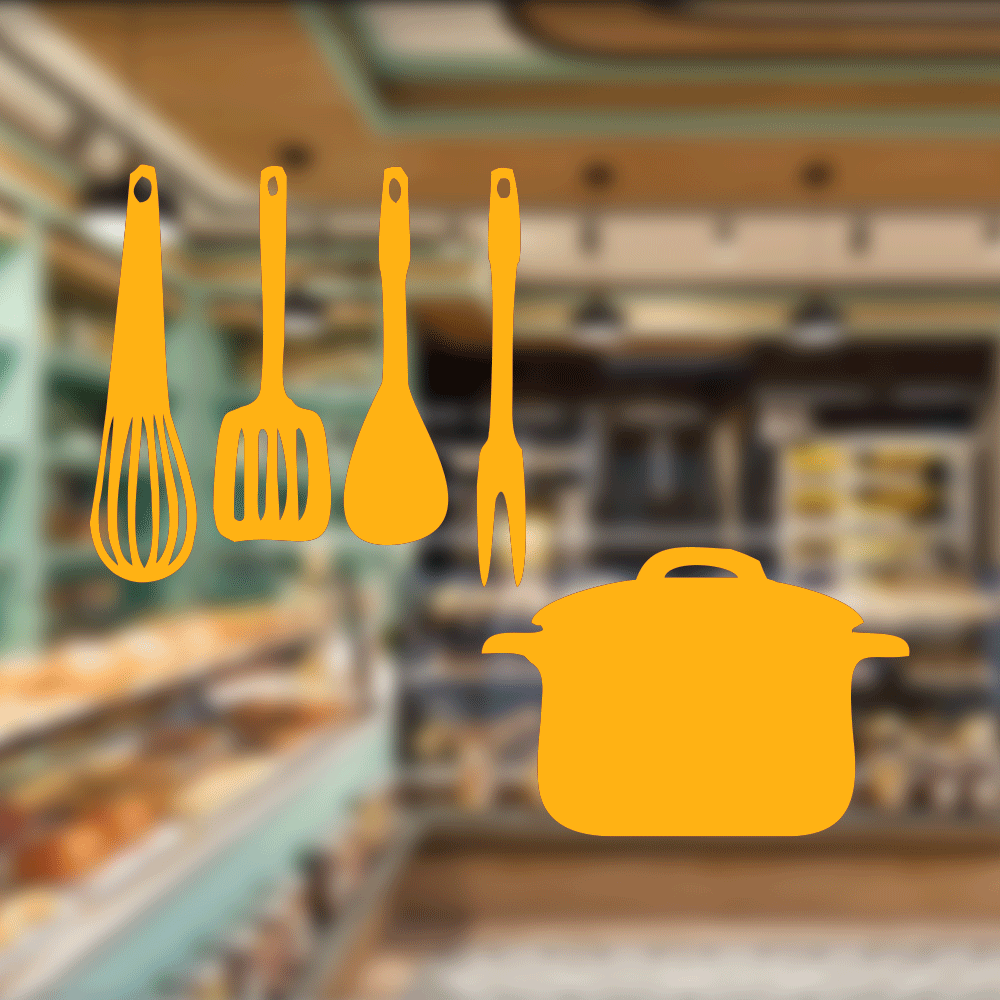 Fırın Ve Pastanelere Özel Mutfak Gereçleri Sticker Yapıştırma
