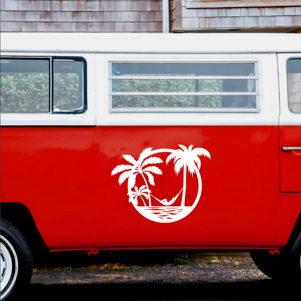 Palmiye Ağacı ve Yaz Karavan Sticker - Araç Sticker Yapıştırma