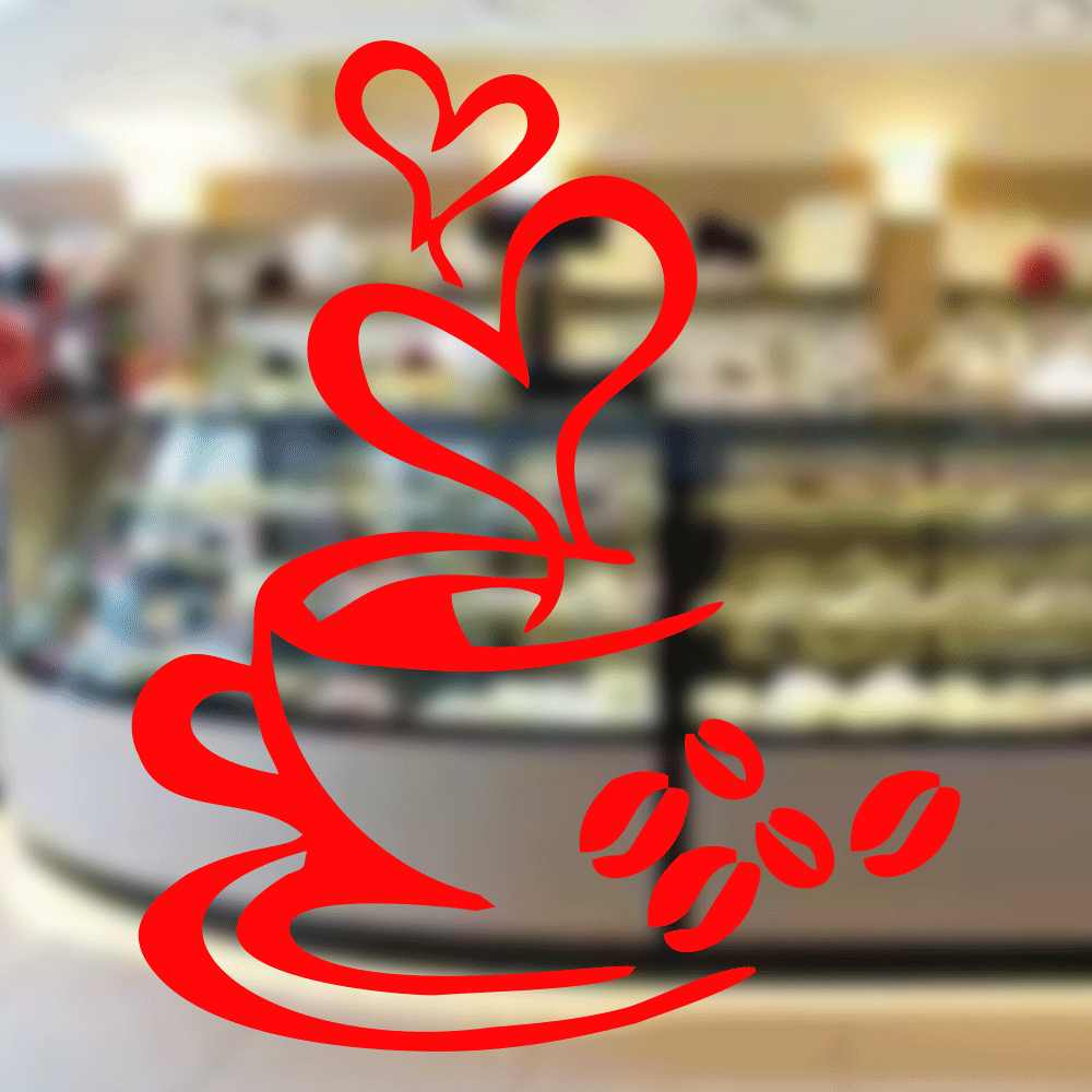 Fırın Ve Pastanelere Özel Kalpli Kahve Sticker Yapıştırma