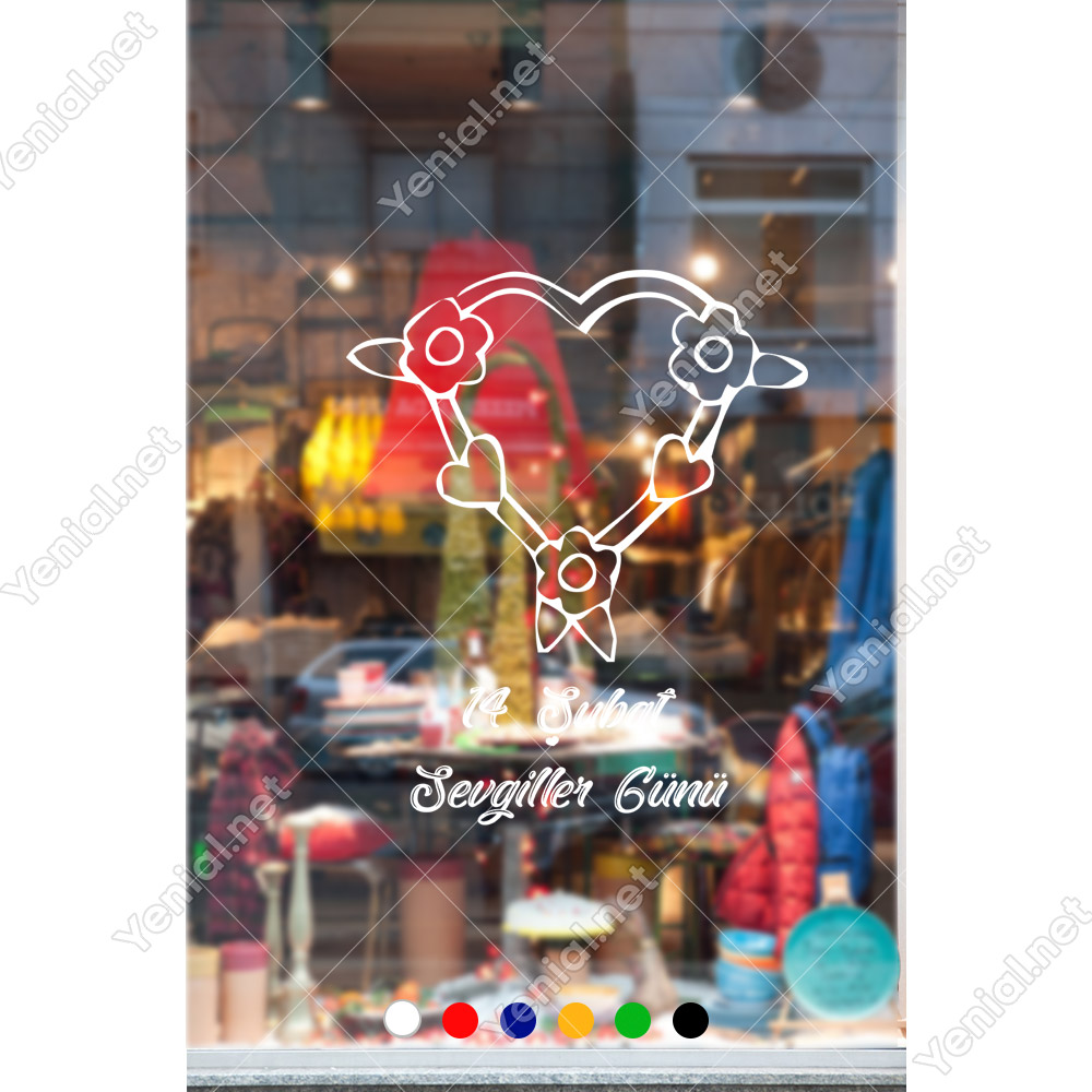 Sevgililer Günü Üzerinde Çiçekler Bulunan Kalp Sticker