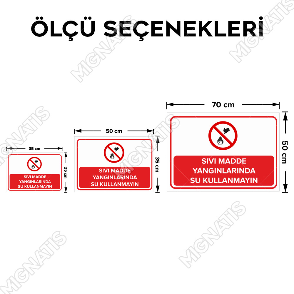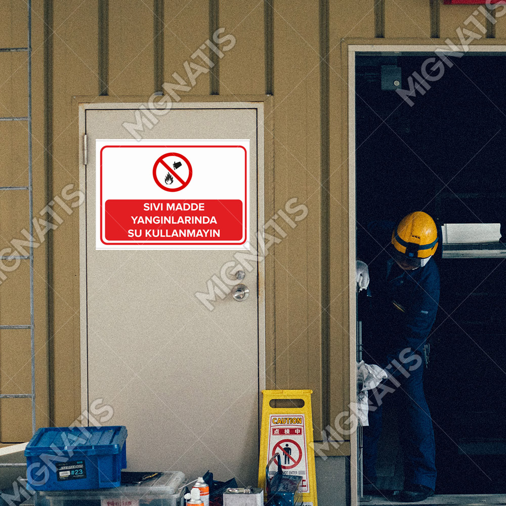 Sıvı Madde Yangınlarında Su Kullanmayın Levhası