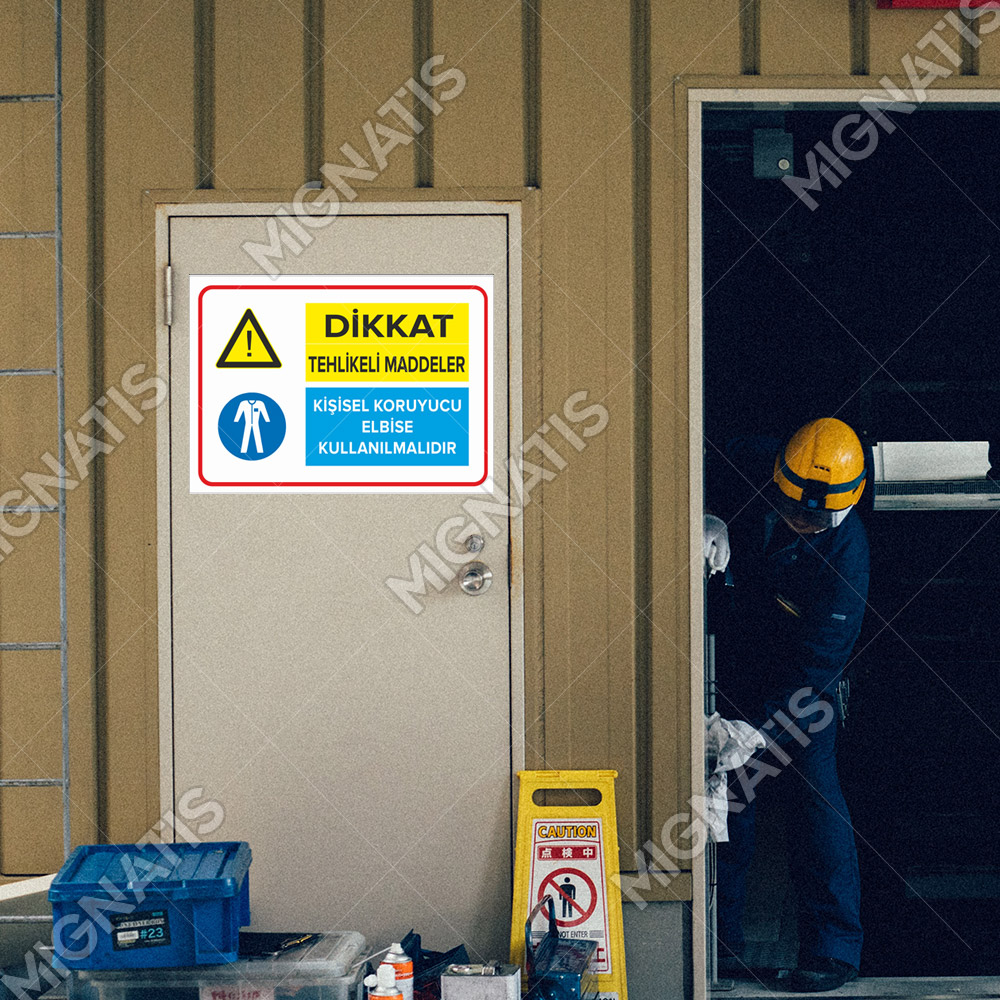 Tehlike Tehlikeli Maddeler Kişisel Koruyucu Eldiven Kullanılmalıdır Levhası