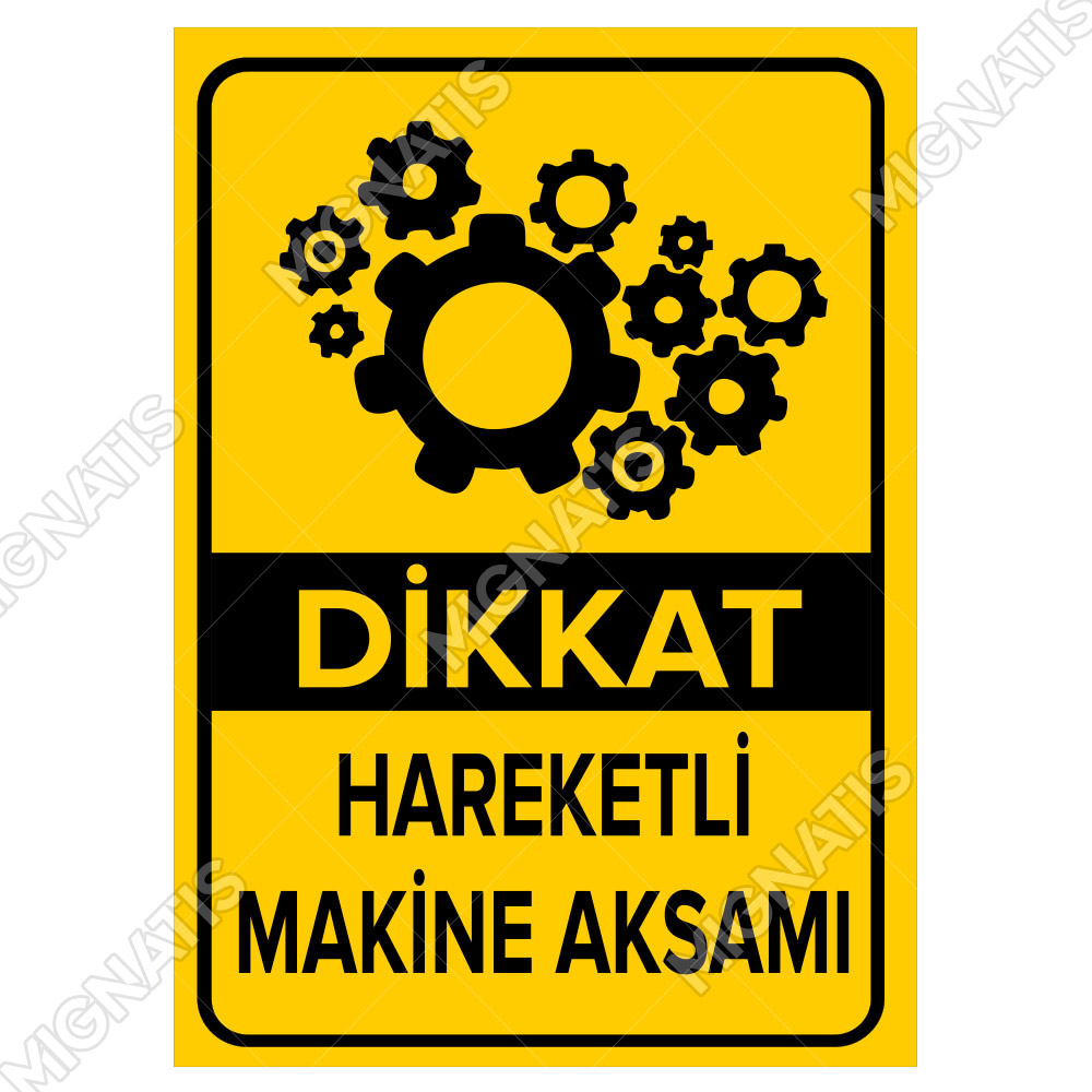 Dikkat Hareketli Makine Aksamı Levhası