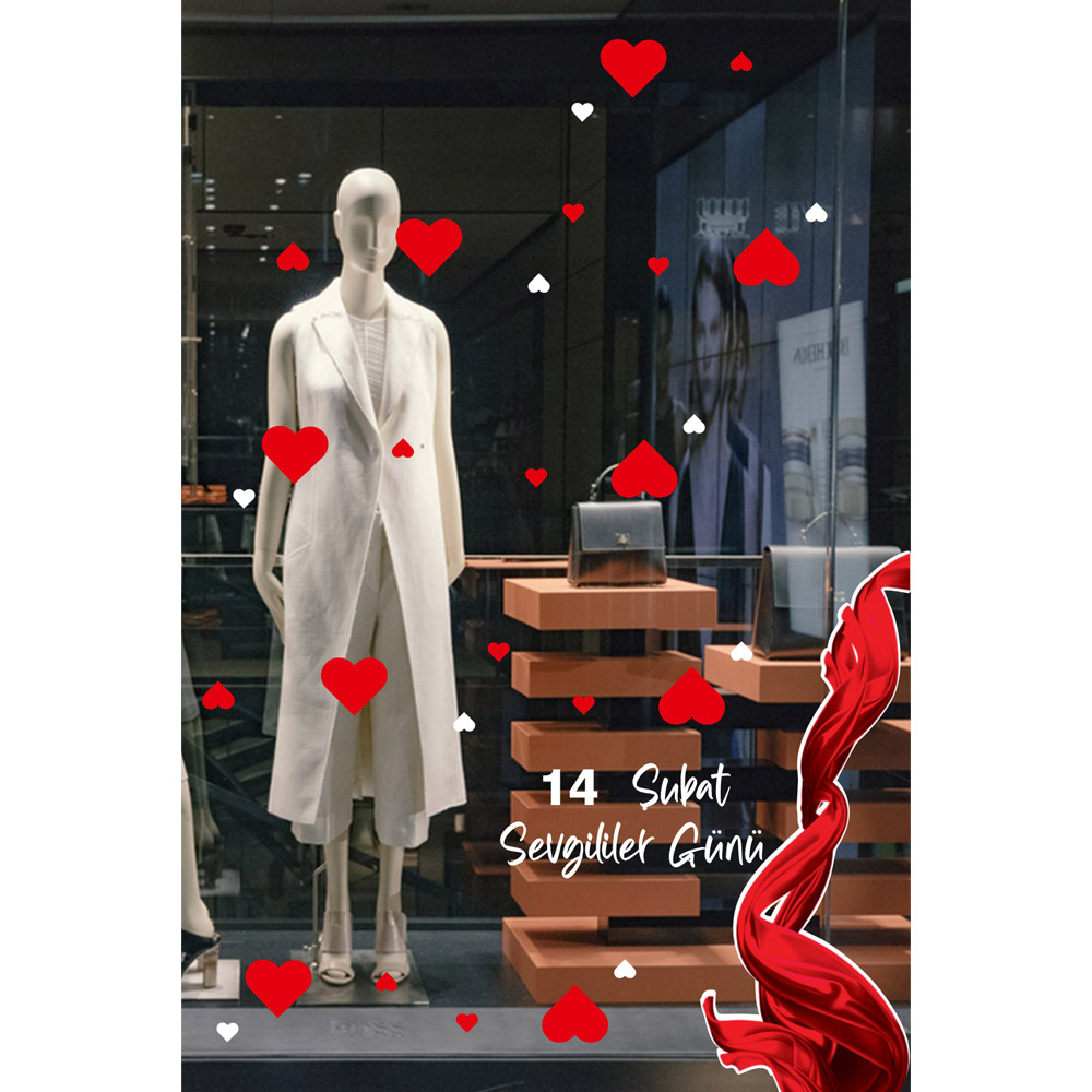 Uçan Kurdela Kumaşı Sevgililer Günü İçin Vitrin Oda Süsleme Stickerı 70cm