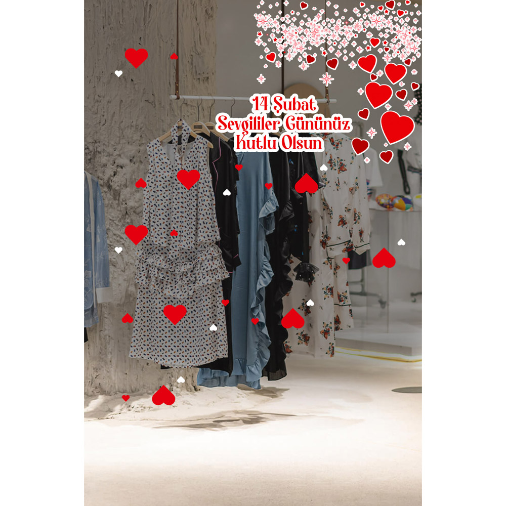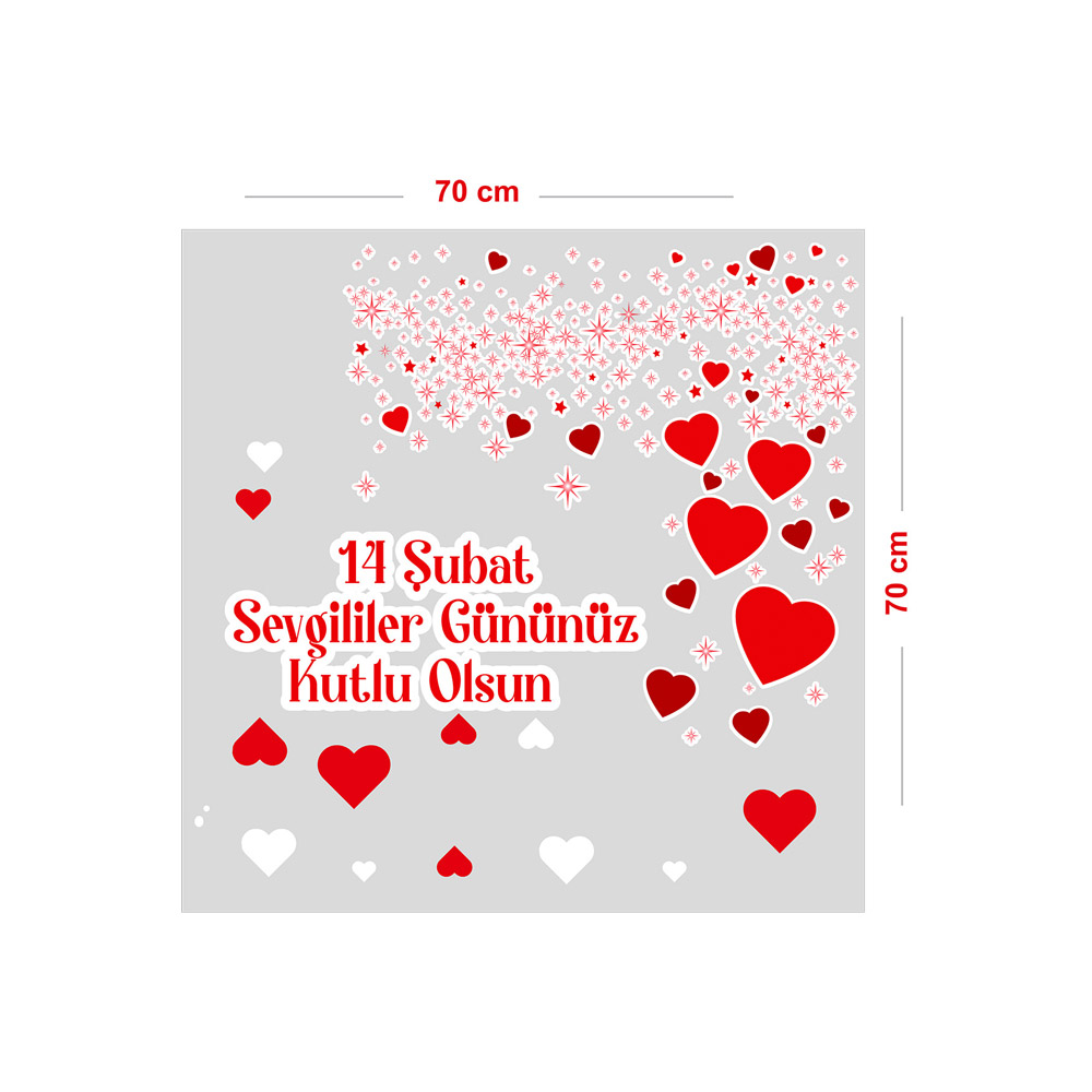 Uçuşan Küçüklü Büyüklü Kalpler 14 Şubat Sevgililer Gününüz Kutlu Olsun Cam Vitrin Oda Stickerı 70cm