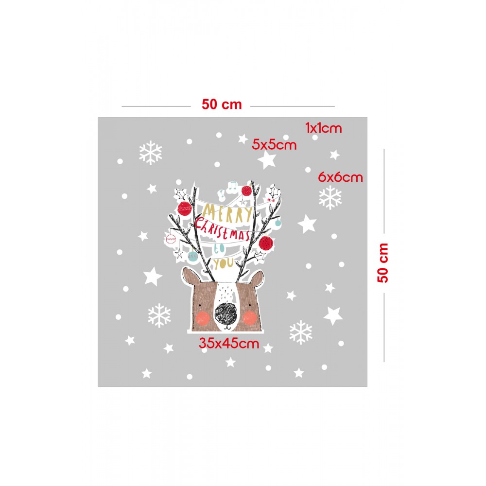Yeni Yıla Özel Merry Christmas Yazısı Yapraklar ve Kar Tanesi Stickerları Ev Vitrin Yılbaşı Stickerı
