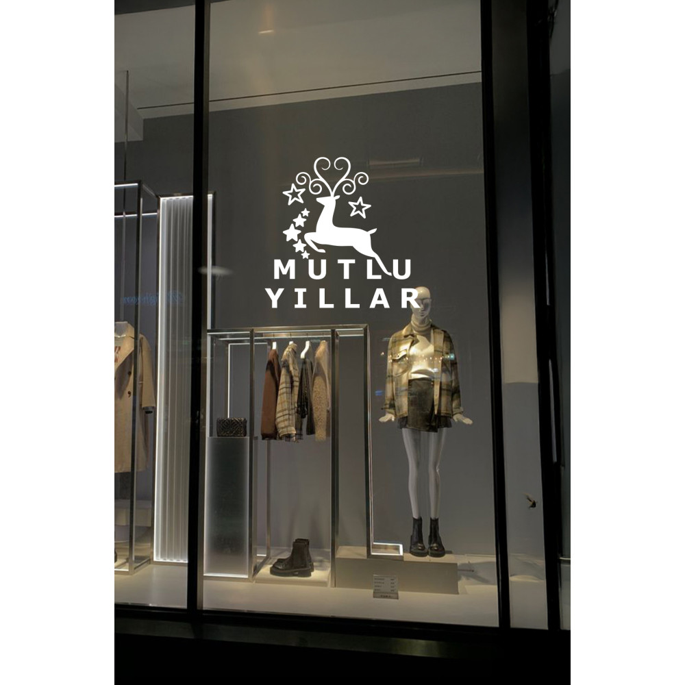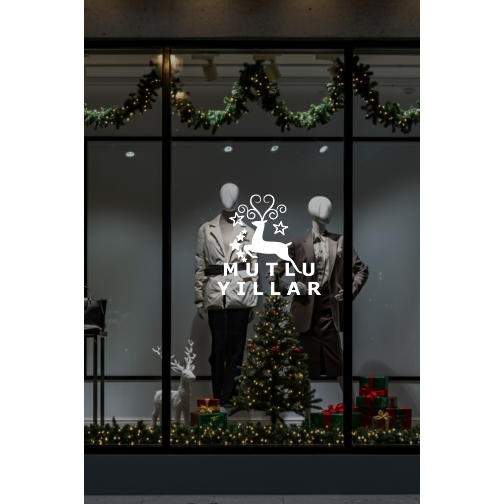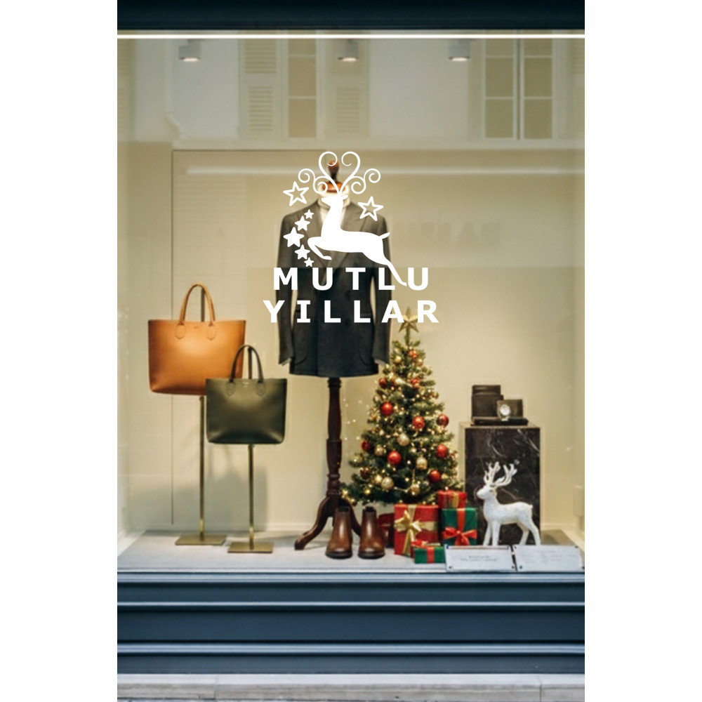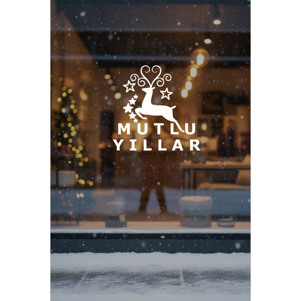 Yeni Yıla Özel Mutlu Yıllar Yazısı Geyik Süslemesi ve Kar Tanesi Yılbaşı Stickerları