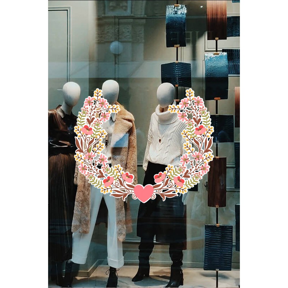 Zarif Modern Görünümlü Çiçekler Vitrin Tacı ve Mağaza Vitrin Cam Stickerı
